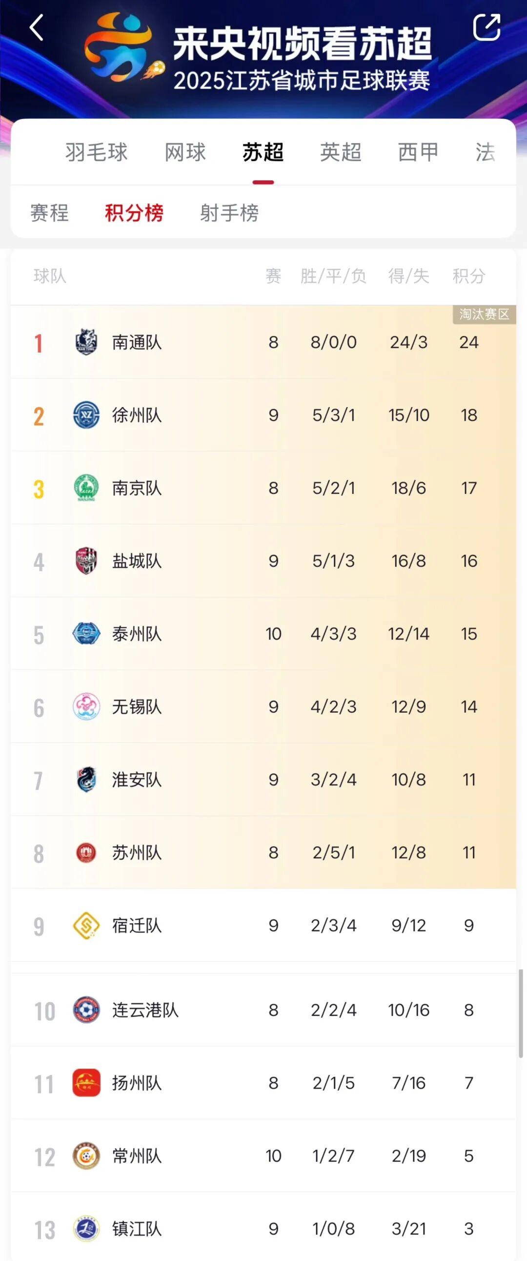 “苏超”第十轮